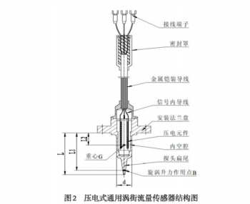 由于流量计与管道法兰式刚性连接,且流量计上压电式涡街流量传感器探头也是与表体刚性连接,管道的振动会直接传导到压电传感器探头上,产生和流量信号相同机理的振动干扰信号;另外,振动也会导致压电传感器的导线、导线端子与电路连接触电等部位的振动,有可能通过某种机电传感机理,转换为电噪声。所以研究涡街传感器自身的结构,提升自身抗振动性能是提高涡街流量计抗振动干扰性能的有效方法。若等到振动干扰信号都叠加在流量型号上了,再去想尽各种办法去别除干扰信号,即不经济,也不理想。