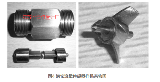 实验采用口径为DN10的涡轮流量传感器, 如图3所示。实验中选择10℃进行实验测试, 对应的流体介质的粘度为43.49cSt。选取0.3m3/h、0.5m3/h、0.7m3/h、0.9m3/h、1.1m3/h、1.3m3/h和1.5m3/h共7个流量点进行, 实验流量范围为0.3m3/h到1.5m3/h。