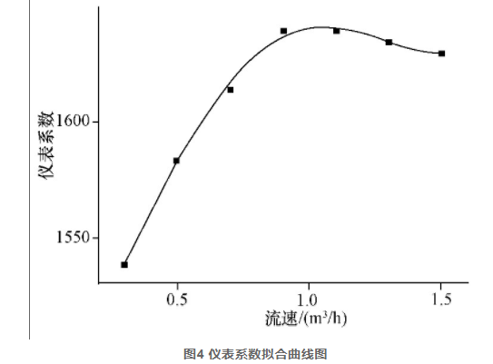 使用Origin软件中的四次多项式polynomial拟合公式, 使用***小二乘法, 得到如下函数, 其中流速为自变量X, 仪表系数为因变量Y: