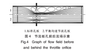 与传统流量计相比,平衡均速节流装置的独特结构有效地降低了介质在节流孔前后的紊流现象,削弱了涡流的形成,如图 4 所示。 从而使测量信号稳定、线性度高、测量范围广。 同时,显著地降低节流孔处的动能损失,从而减少了流体运行所需的能量消耗,节省运行费用。 平衡均速流量计在测量精度、量程比、阻力损失、应用环境等方面均有卓越的性能,特别是针对能源管理系统的特点,具有显著的优势。